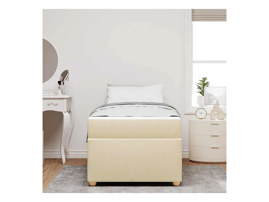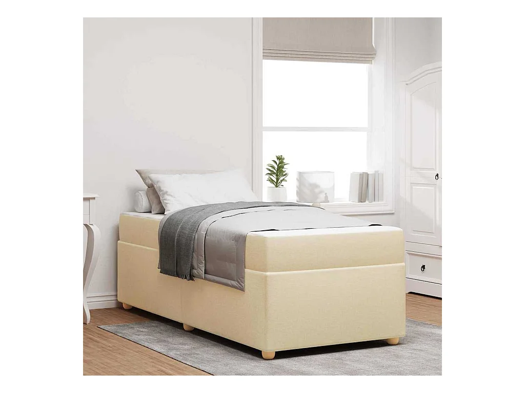 Cadre de lit avec matelas Crème 90 x 190 cm tissu