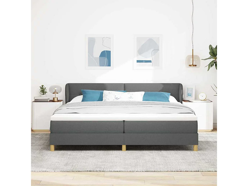 Cadre de lit avec Matelas Crème 90x200 cm Tissu Gris foncé
