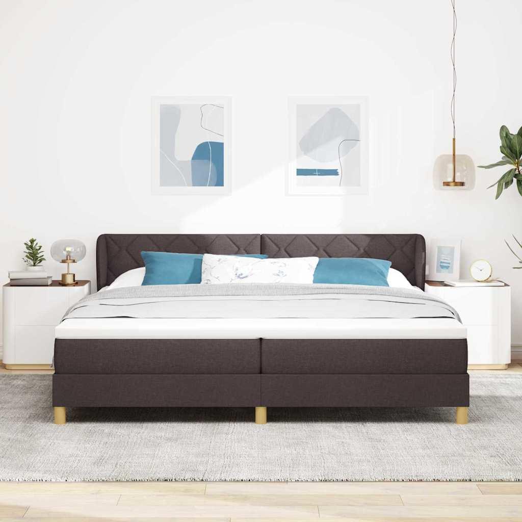 Cadre de lit avec matelas Marron foncé 200 x 200 cm tissu