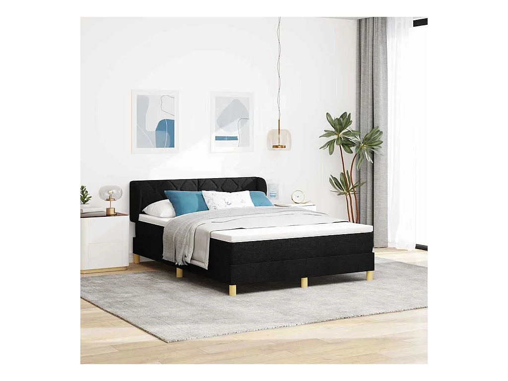 Cadre de lit avec matelas Noir 140 x 200 cm tissu