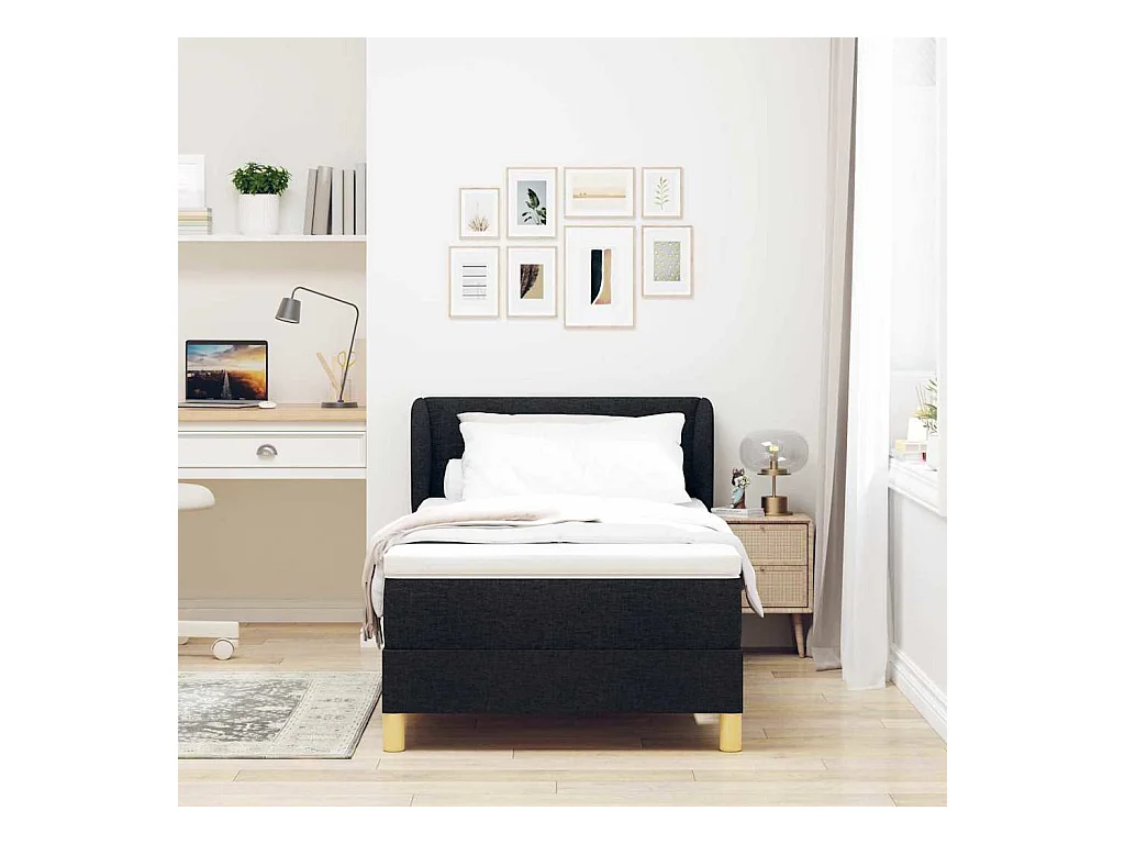Cadre de lit ottoman avec matelas noir 100x200cm tissu