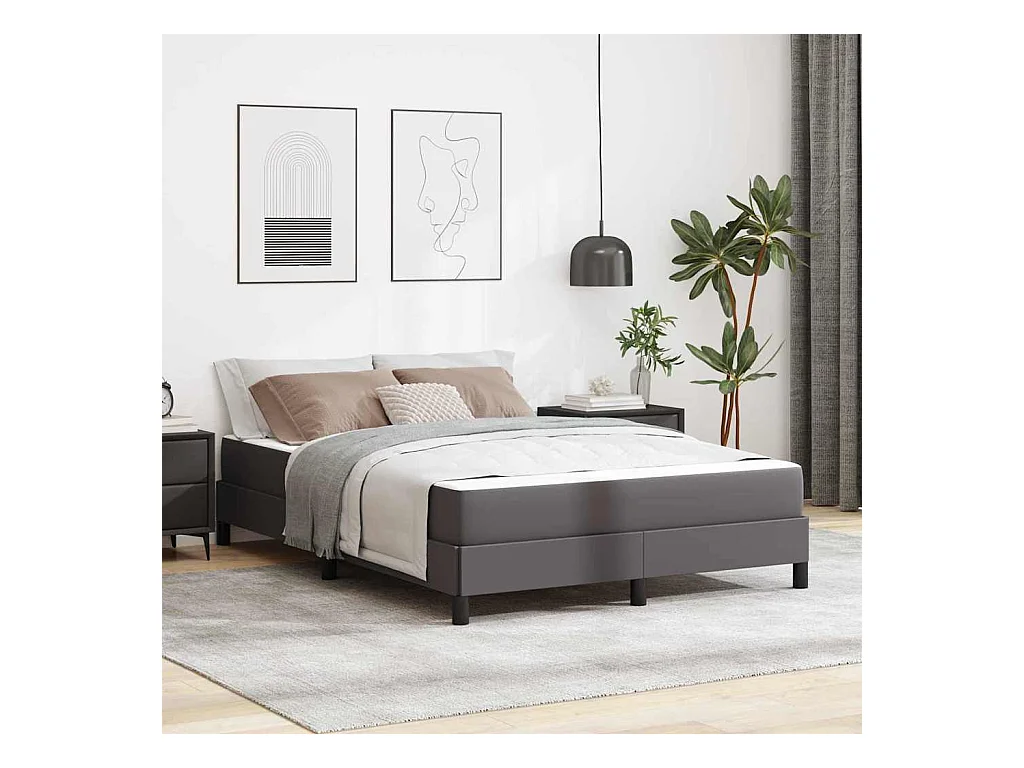 Cadre de lit avec matelas Gris 140 x 190 cm Faux cuir