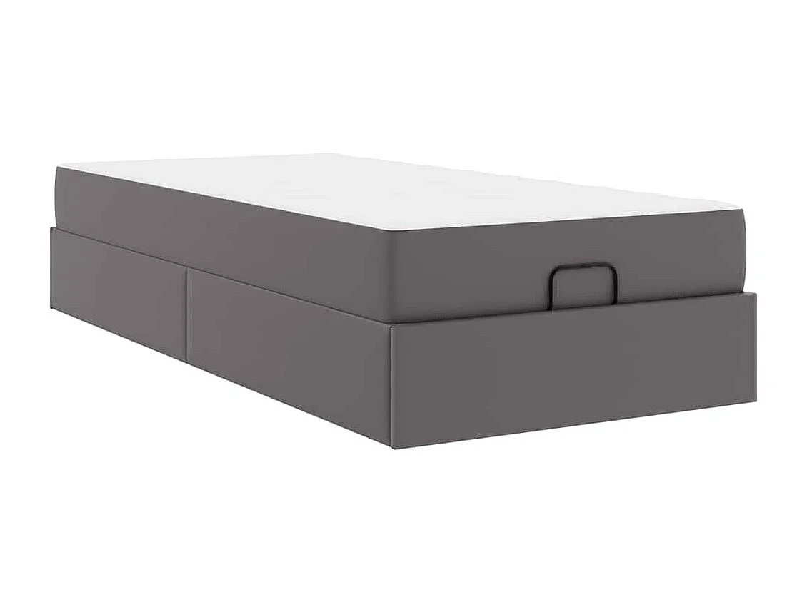 Cadre de lit ottoman avec matelas gris 90x200 cm similicuir