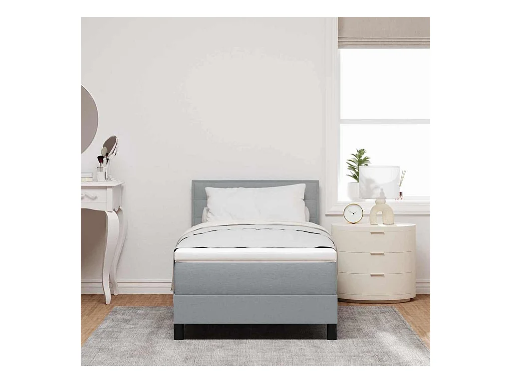 Cadre de lit ottoman et matelas gris clair 100x200 cm tissu