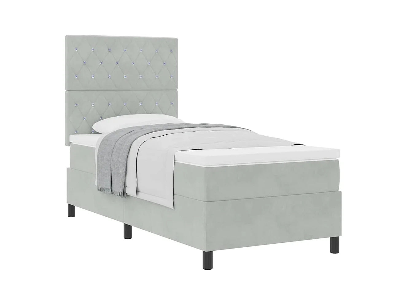 Cadre de lit avec matelas Gris clair 100 x 200 cm Velours
