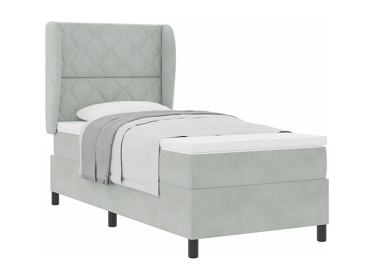 Cadre de lit avec matelas Gris clair 100 x 200 cm Velours