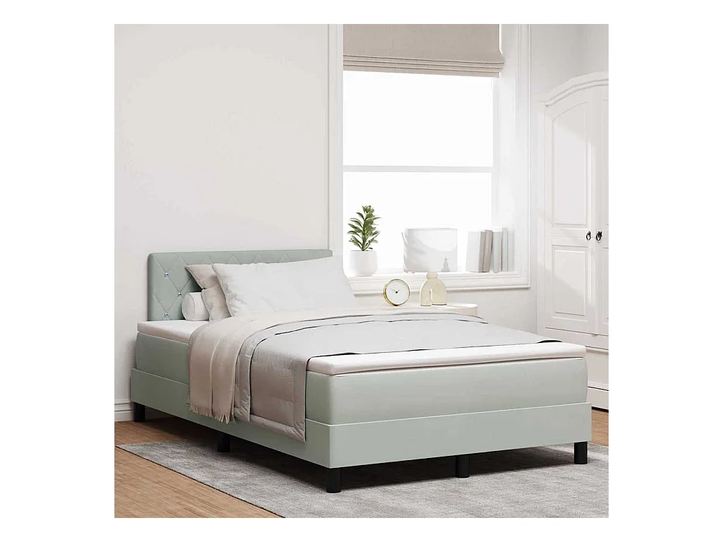 Cadre de lit avec matelas Gris clair 120 x 190 cm Velours