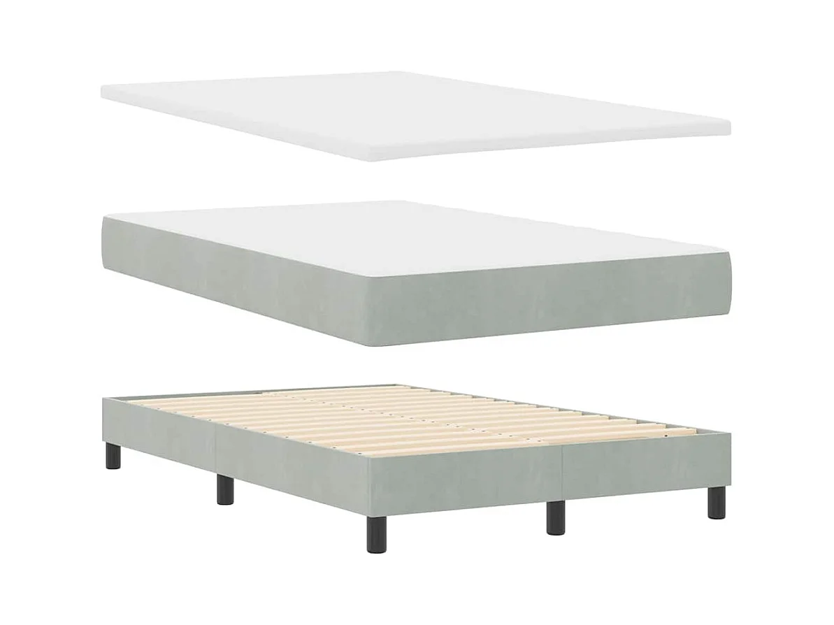 Sommier à lattes de lit et matelas gris clair 120x190cm velours