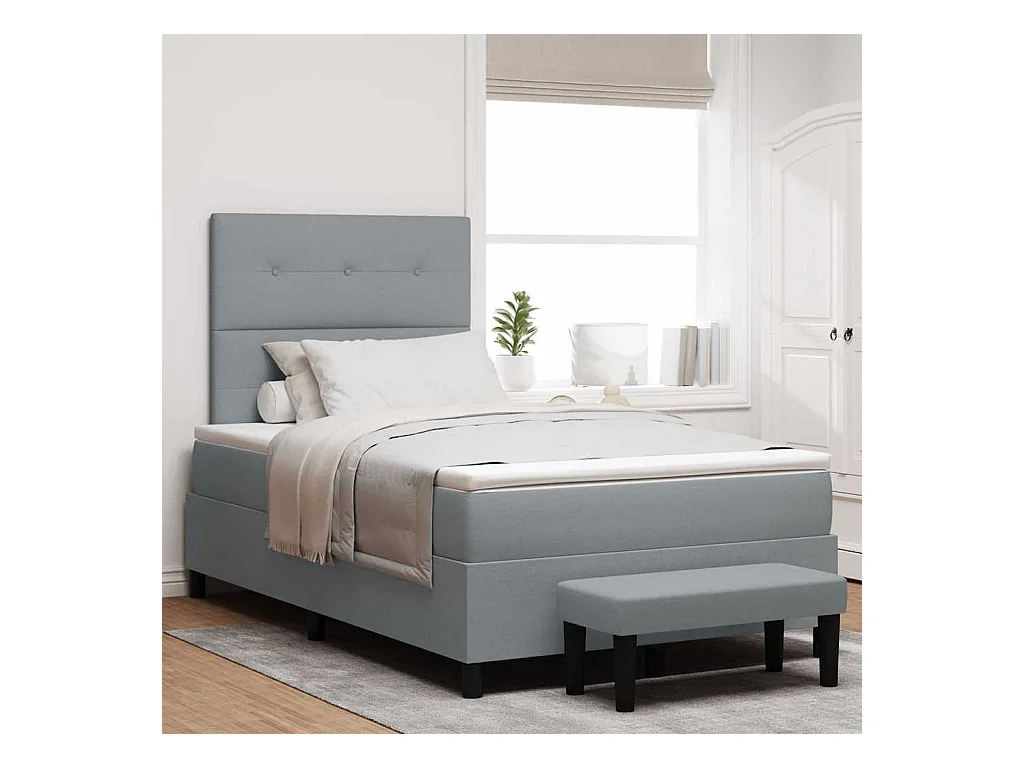 Cadre de lit ottoman avec matelas gris clair 120x190 cm tissu