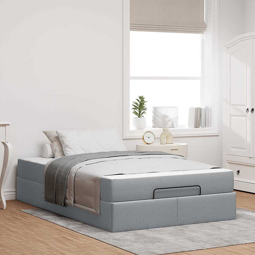 Cadre de lit ottoman et matelas gris clair 120x200 cm tissu