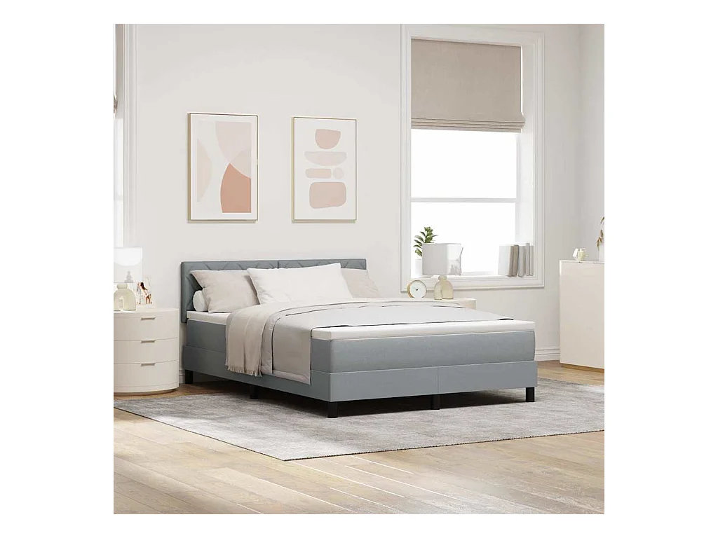 Cadre de lit avec matelas Gris clair 140 x 200 cm tissu