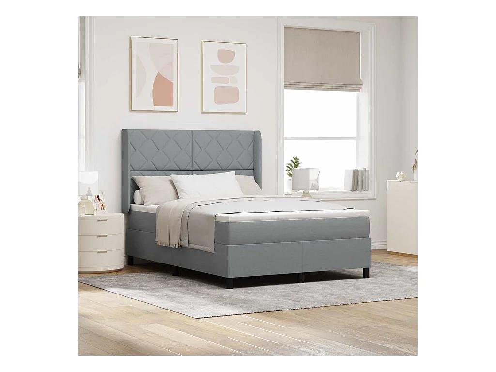 Cadre de lit avec matelas Gris clair 140 x 200 cm tissu