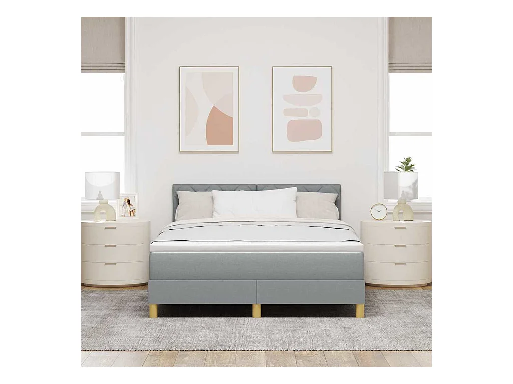 Cadre de lit ottoman et matelas gris clair 160x200cm tissu
