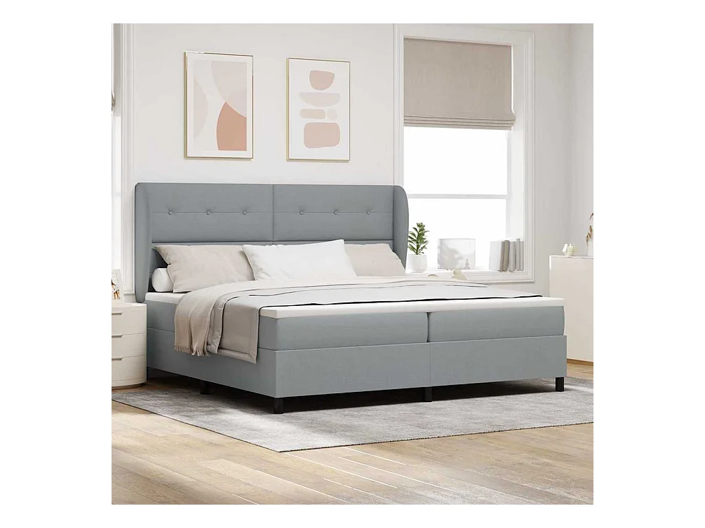 Cadre de lit avec matelas Gris clair 200 x 200 cm tissu