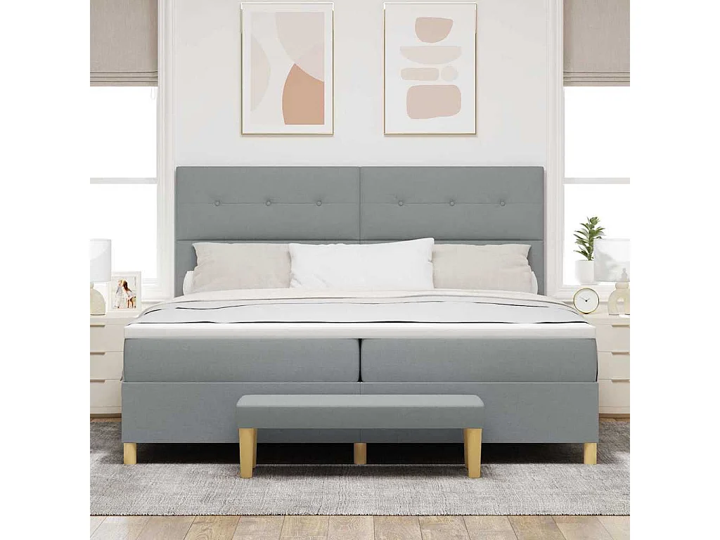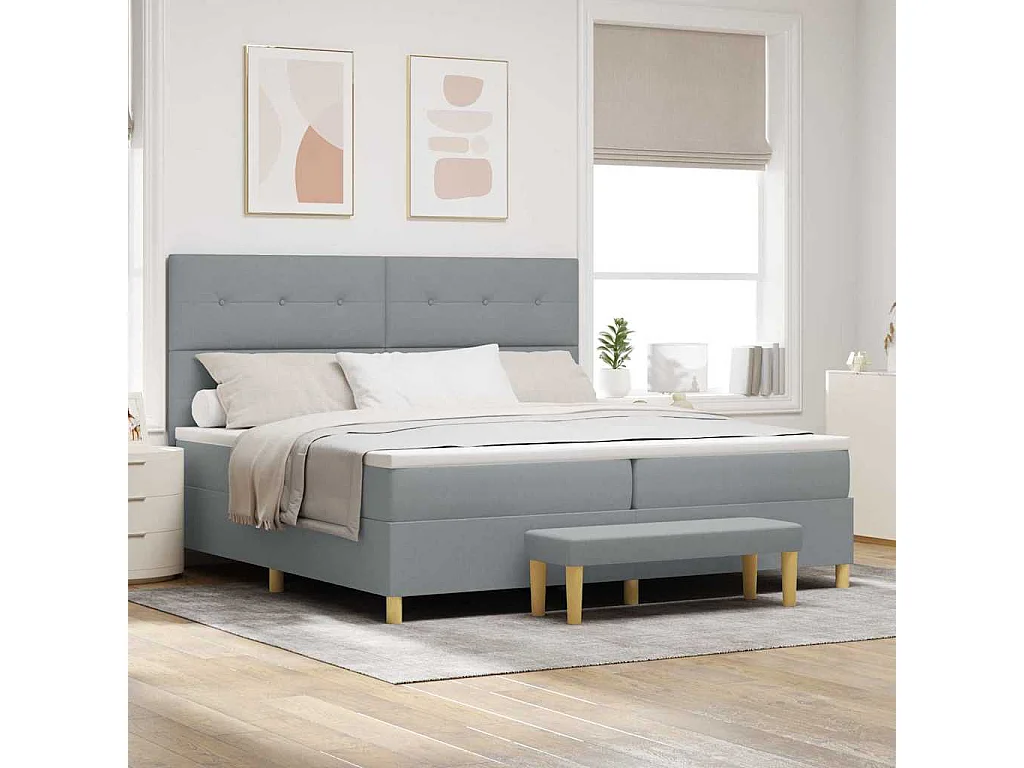Cadre de lit avec matelas Gris clair 200 x 200 cm tissu