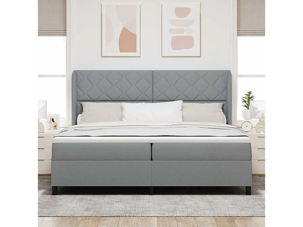 Cadre de lit avec matelas Gris clair 200 x 200 cm tissu