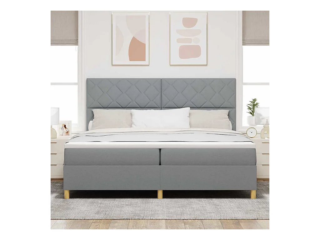 Cadre de lit avec matelas Gris clair 200 x 200 cm tissu