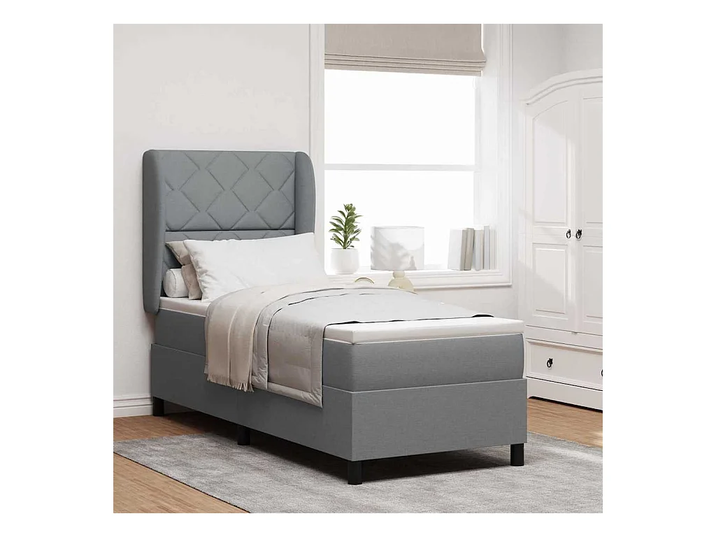 Cadre de lit avec matelas Gris clair 80 x 200 cm tissu