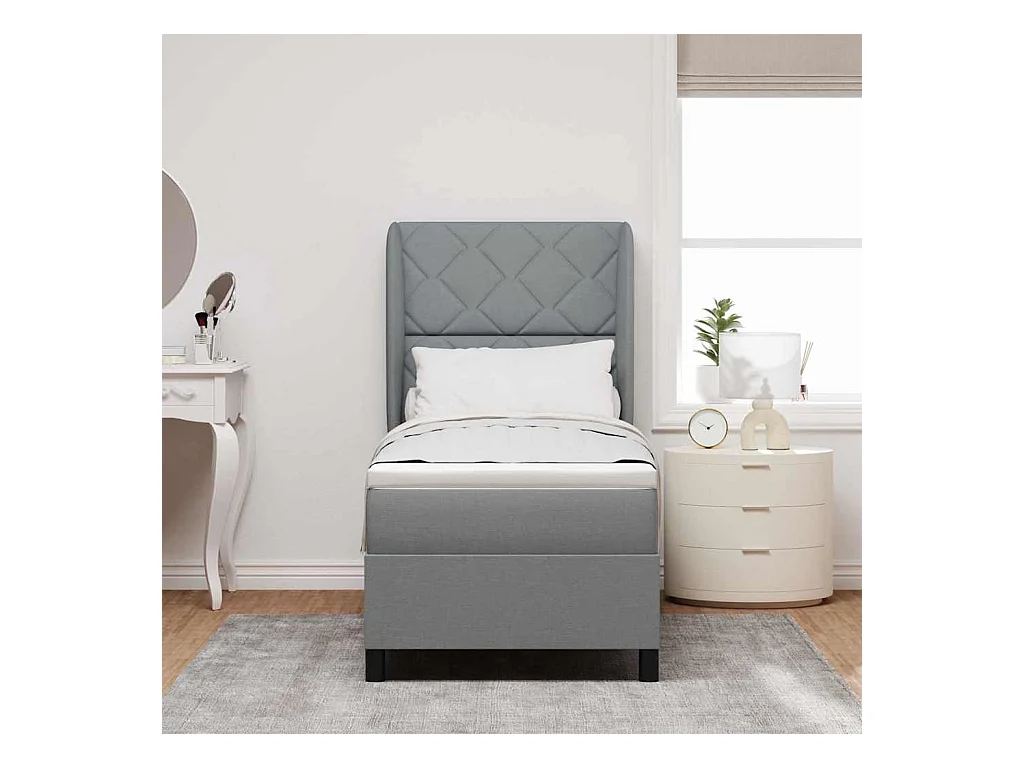 Cadre de lit ottoman avec matelas gris clair 80x200 cm tissu