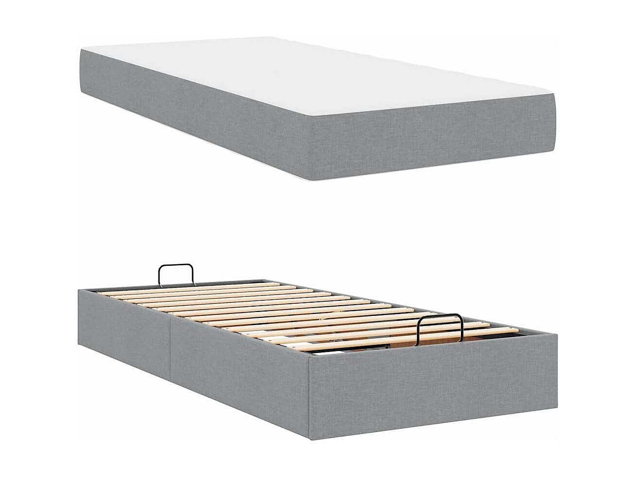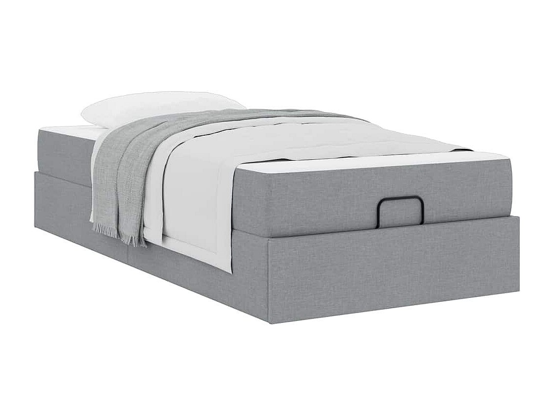 Cadre de lit ottoman et matelas gris clair 90x200 cm tissu