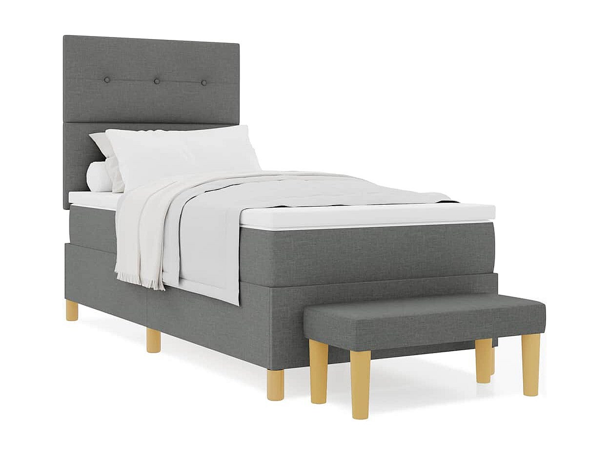 Cadre de lit avec matelas Gris foncé 100 x 200 cm tissu
