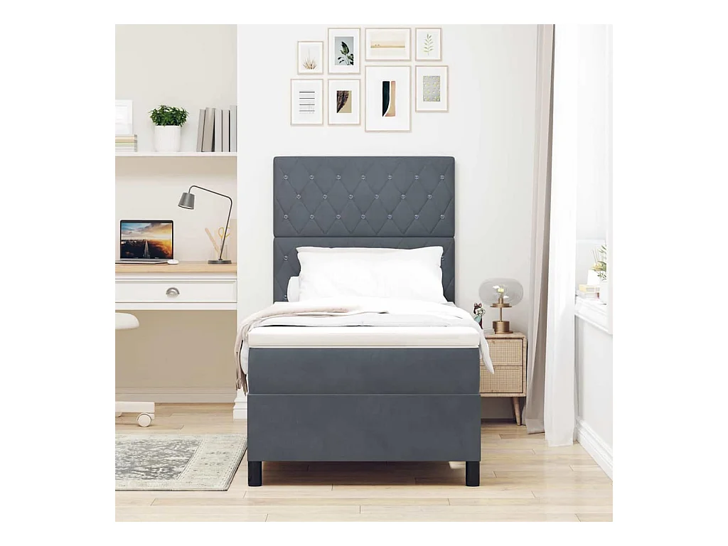 Cadre de lit avec matelas Gris foncé 100 x 200 cm Velours