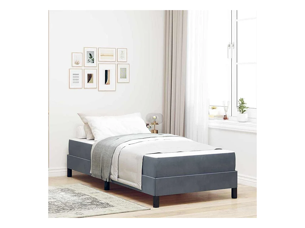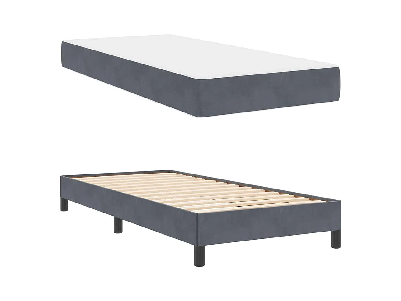 Cadre de lit avec matelas Gris foncé 100 x 200 cm Velours