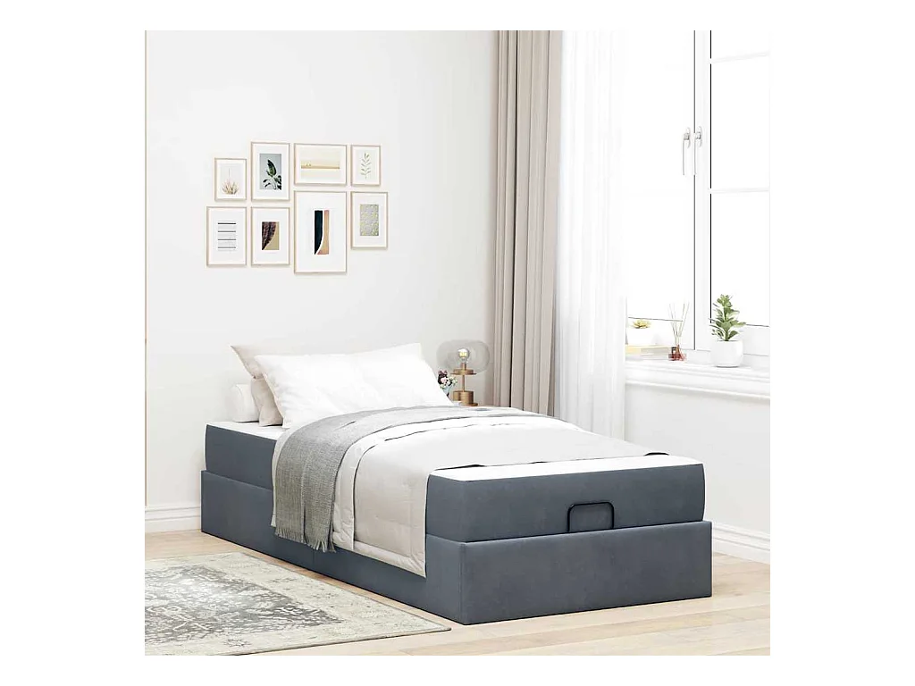 Cadre de lit ottoman avec matelas gris foncé 100x200 cm velours