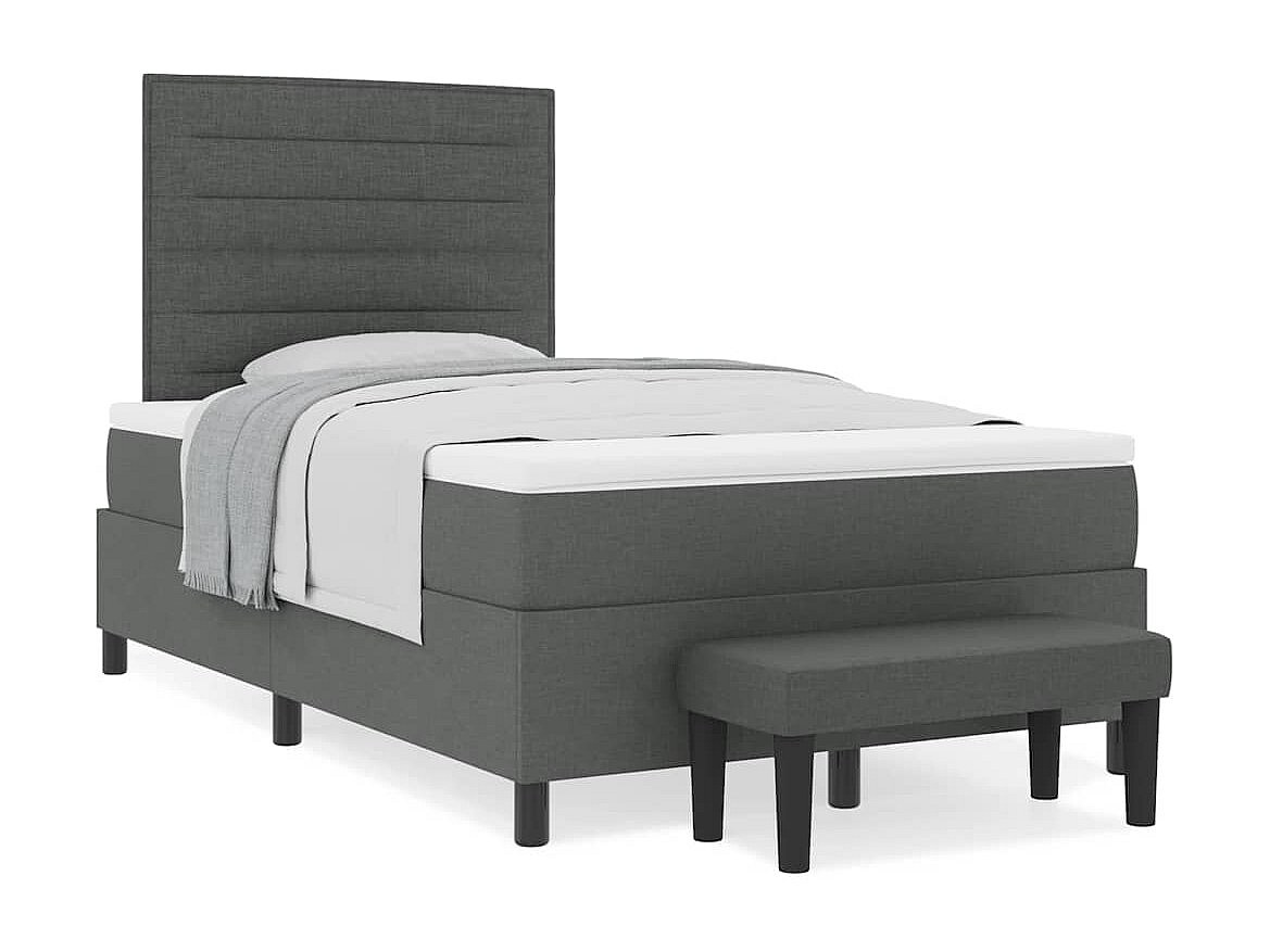 Cadre de lit avec matelas Gris foncé 120 x 190 cm tissu