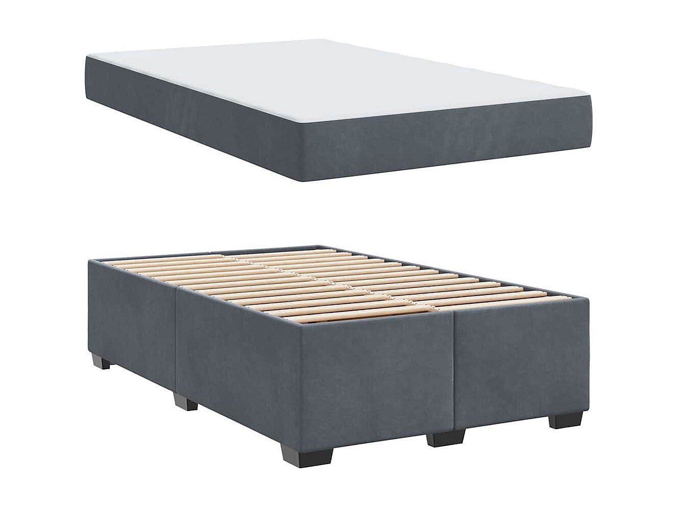 Sommier à lattes de lit et matelas gris foncé 120x190cm velours