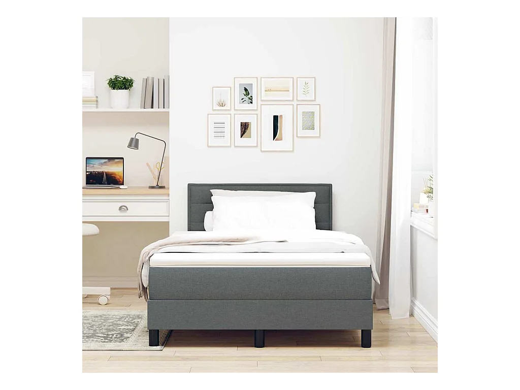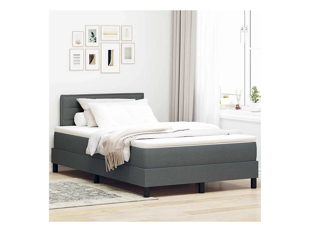 Cadre de lit avec matelas Gris foncé 120 x 200 cm tissu