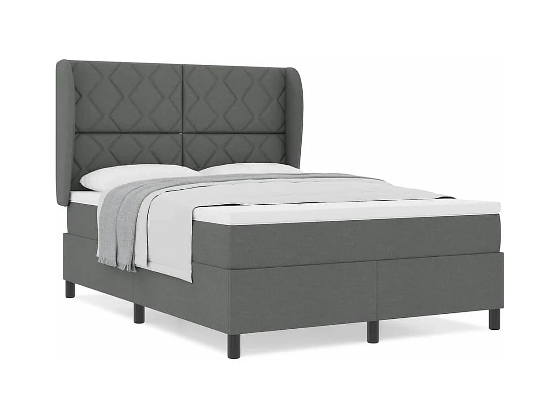 Cadre de lit avec matelas Gris foncé 140 x 190 cm tissu