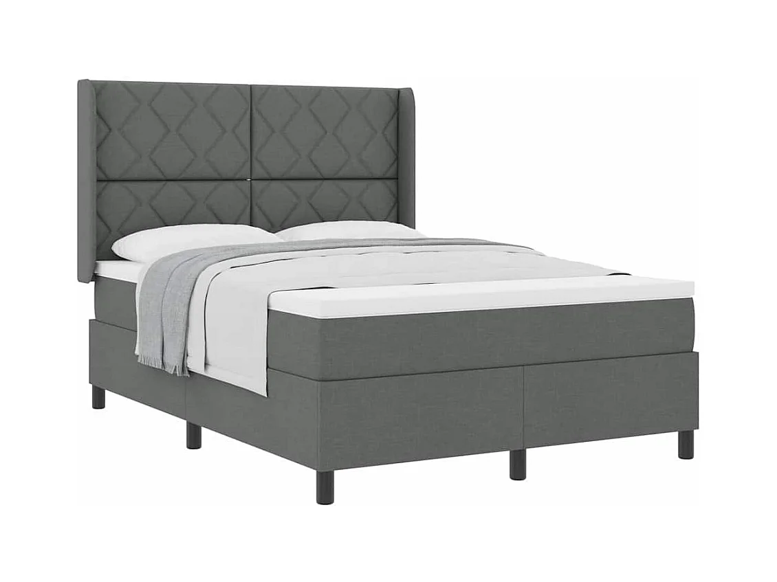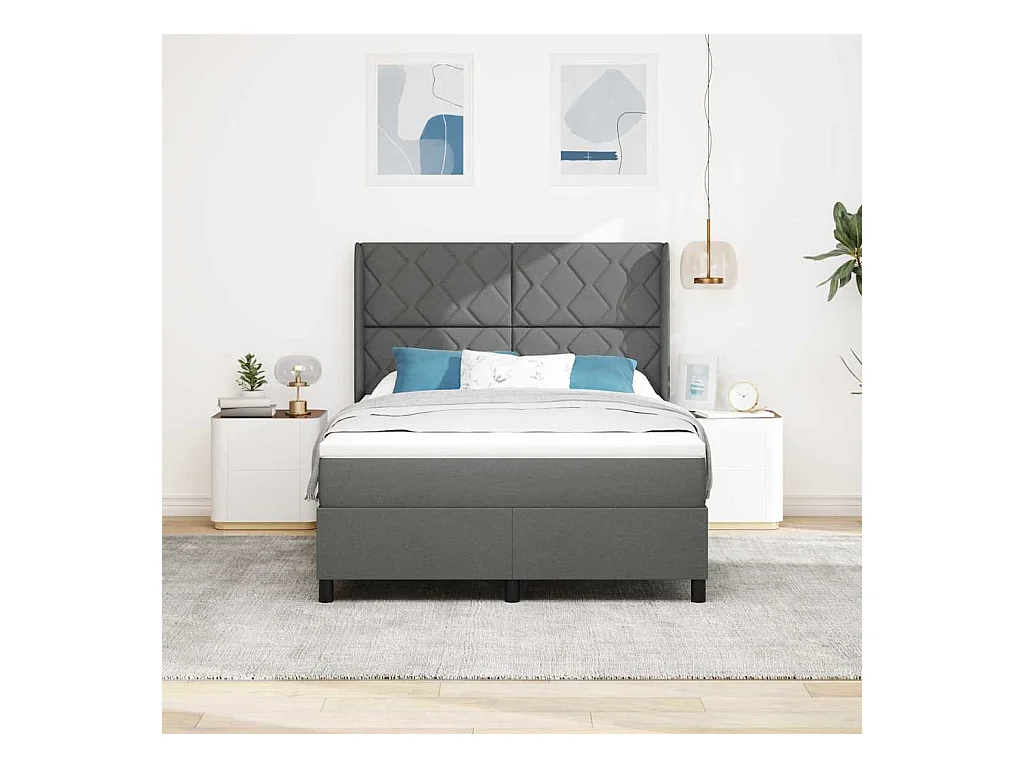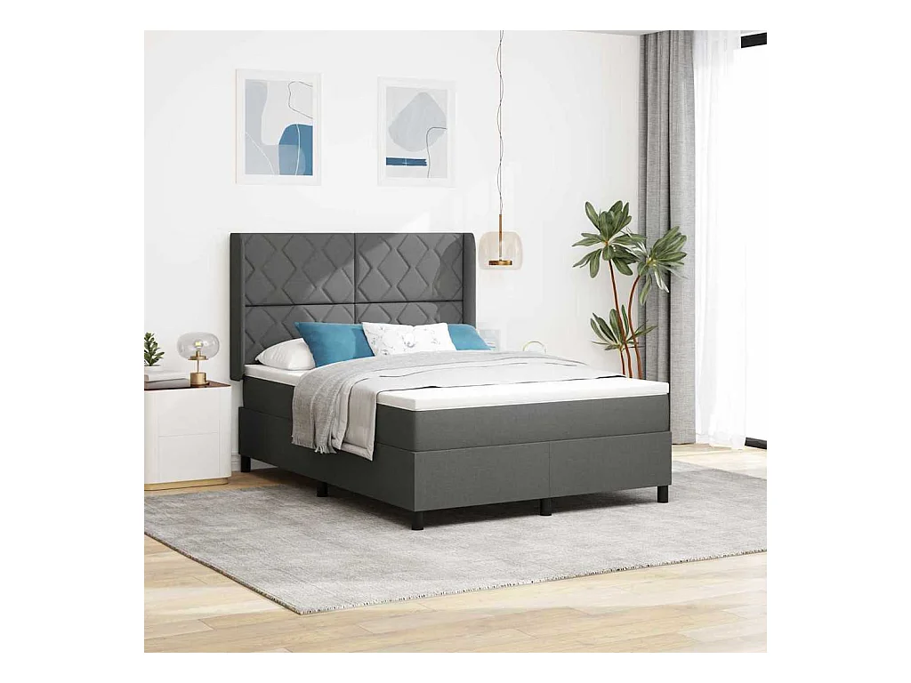 Cadre de lit avec matelas Gris foncé 140 x 200 cm tissu