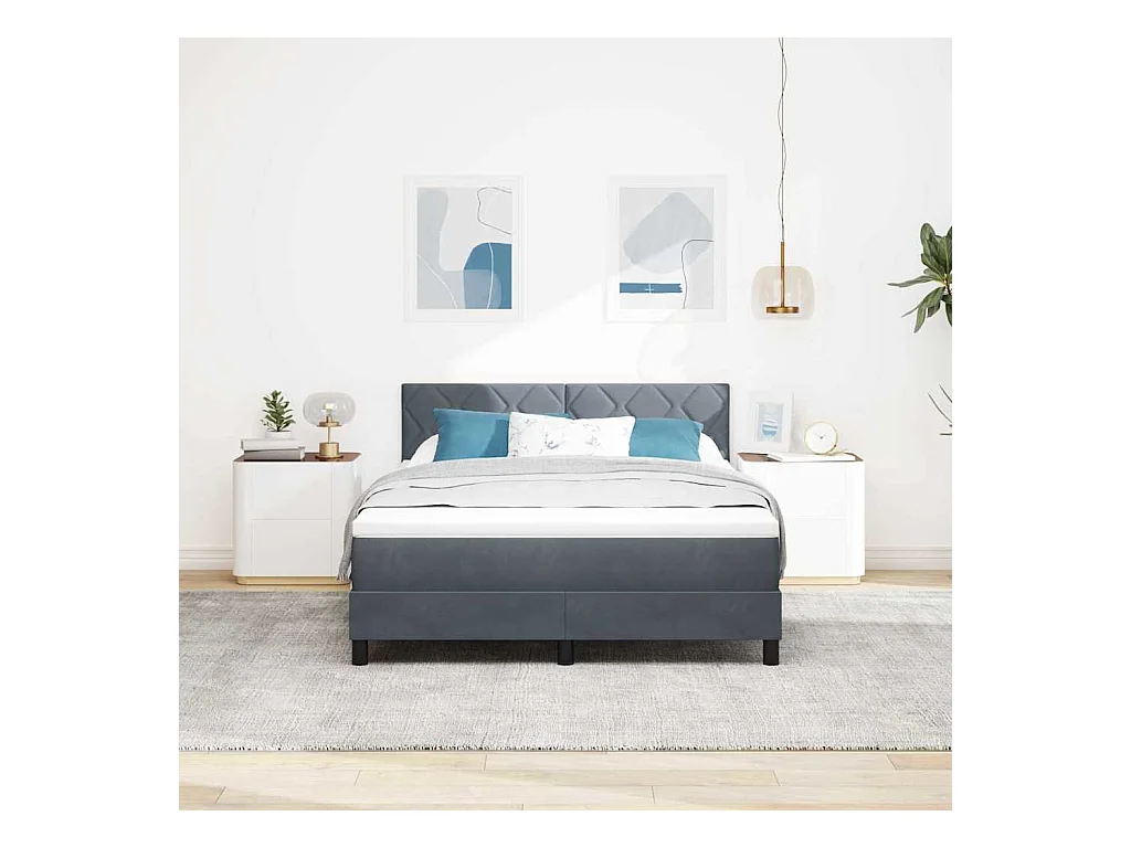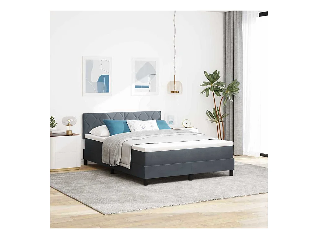 Cadre de lit avec matelas Gris foncé 140 x 200 cm Velours