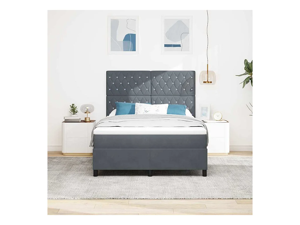Cadre de lit avec matelas Gris foncé 160 x 200 cm Velours