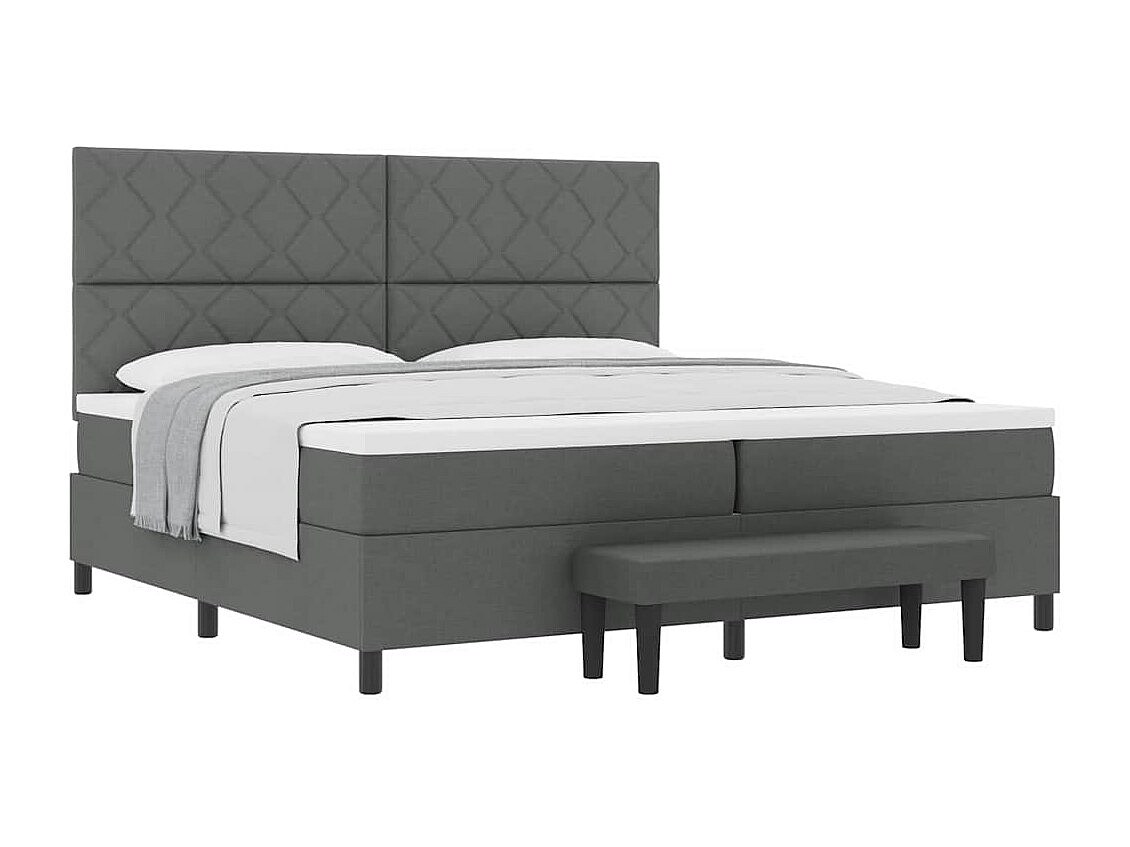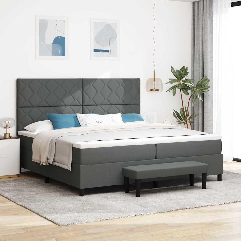 Cadre de lit avec matelas Gris foncé 200 x 200 cm tissu