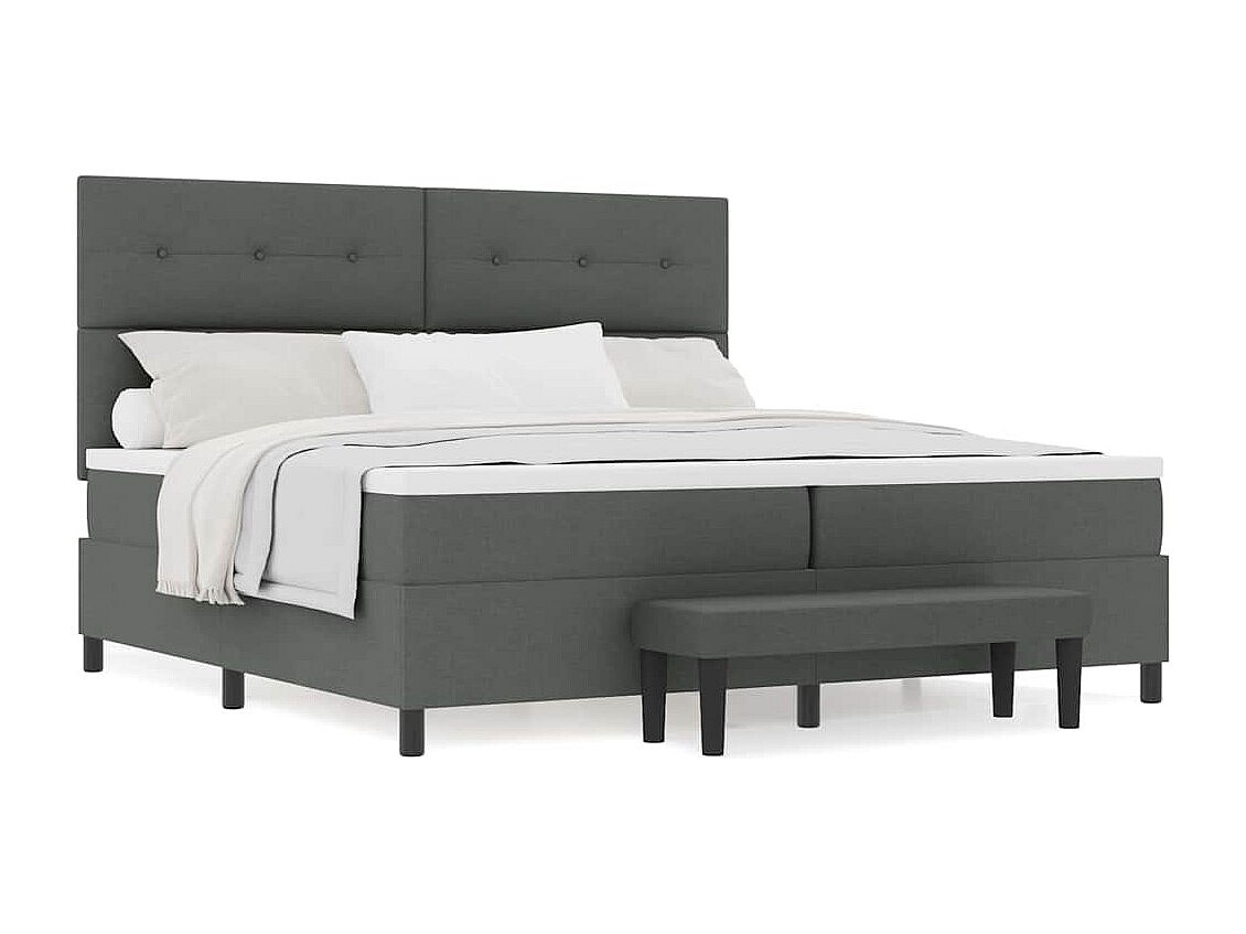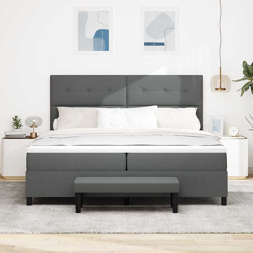 Cadre de lit avec matelas Gris foncé 200 x 200 cm tissu