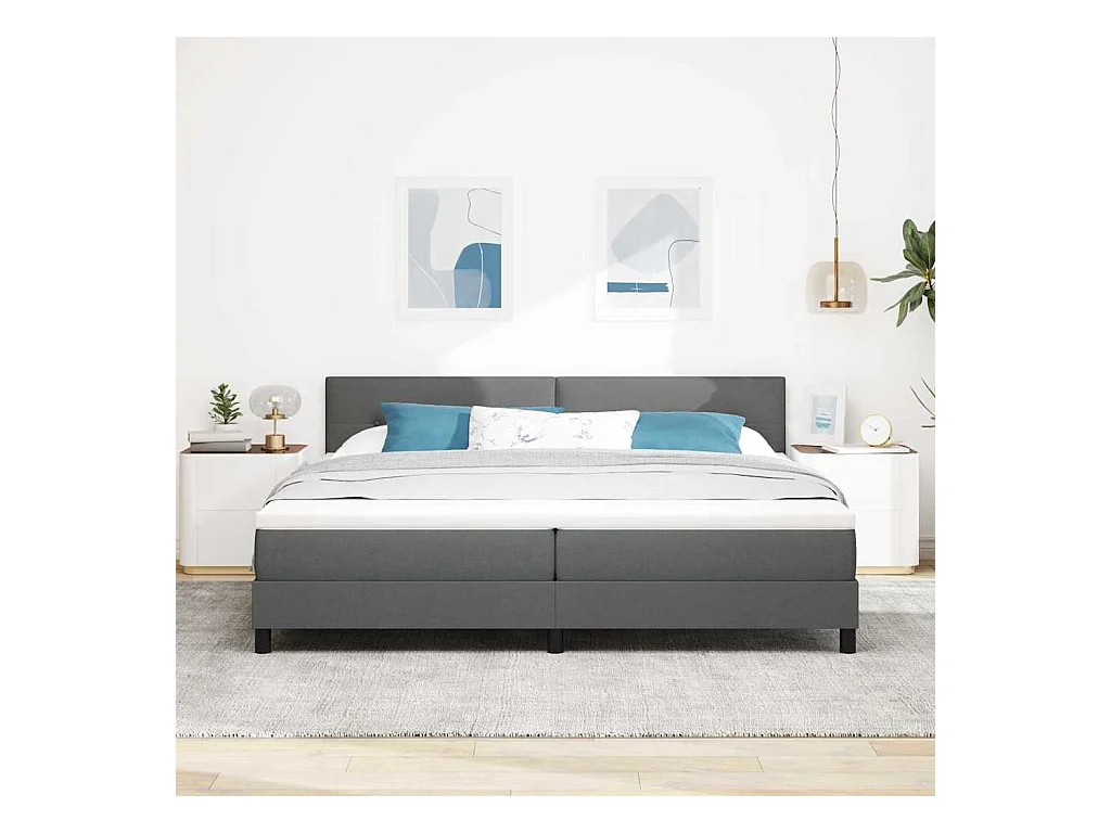 Cadre de lit avec matelas Gris foncé 200 x 200 cm tissu
