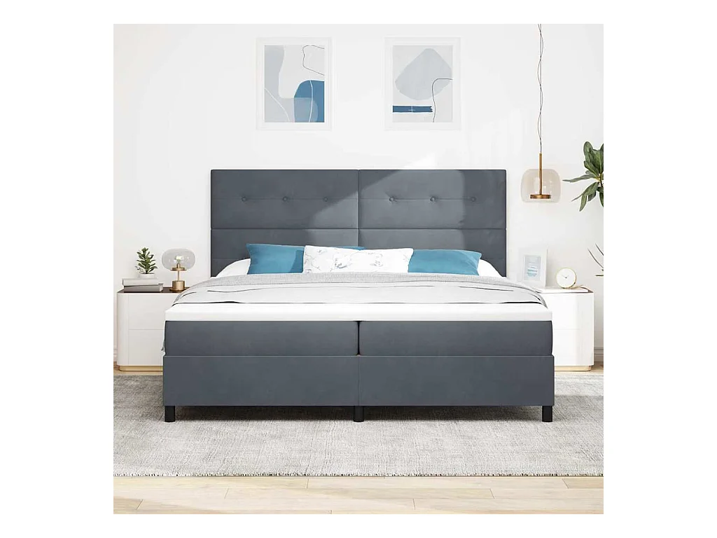 Cadre de lit avec matelas Gris foncé 200 x 200 cm Velours