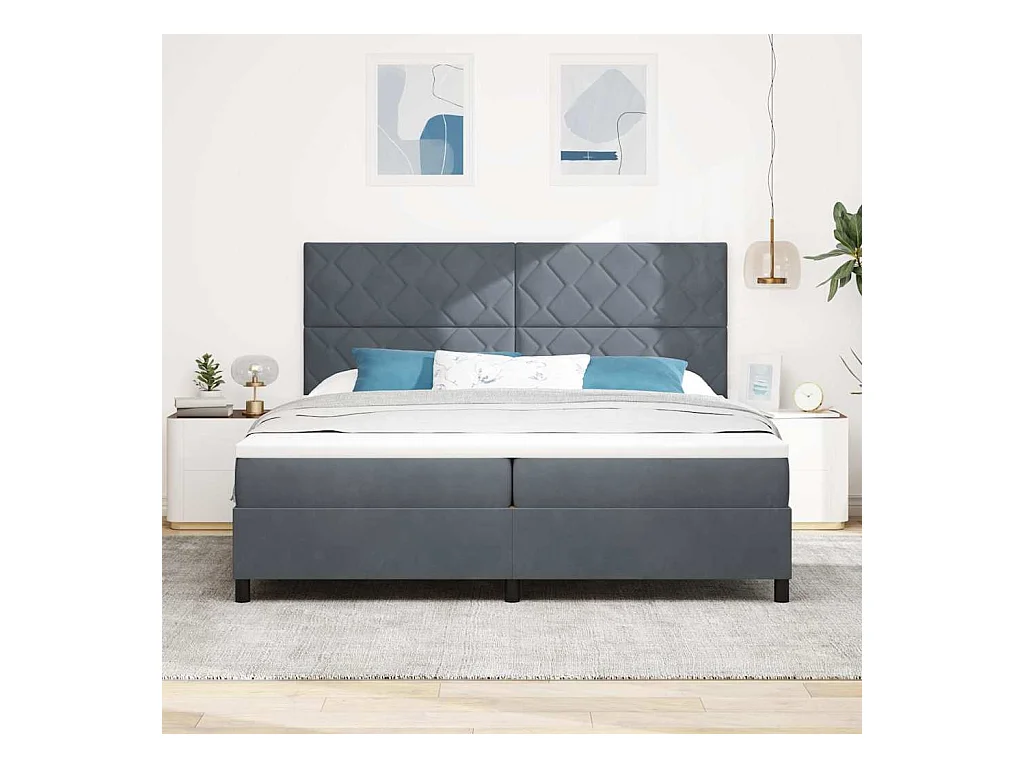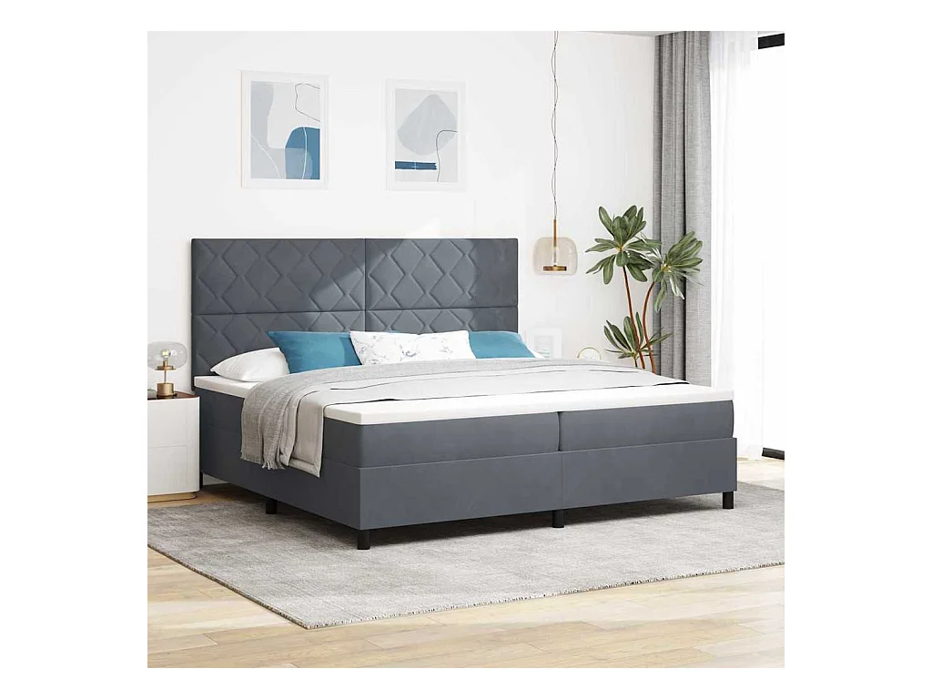 Cadre de lit avec matelas Gris foncé 200 x 200 cm Velours