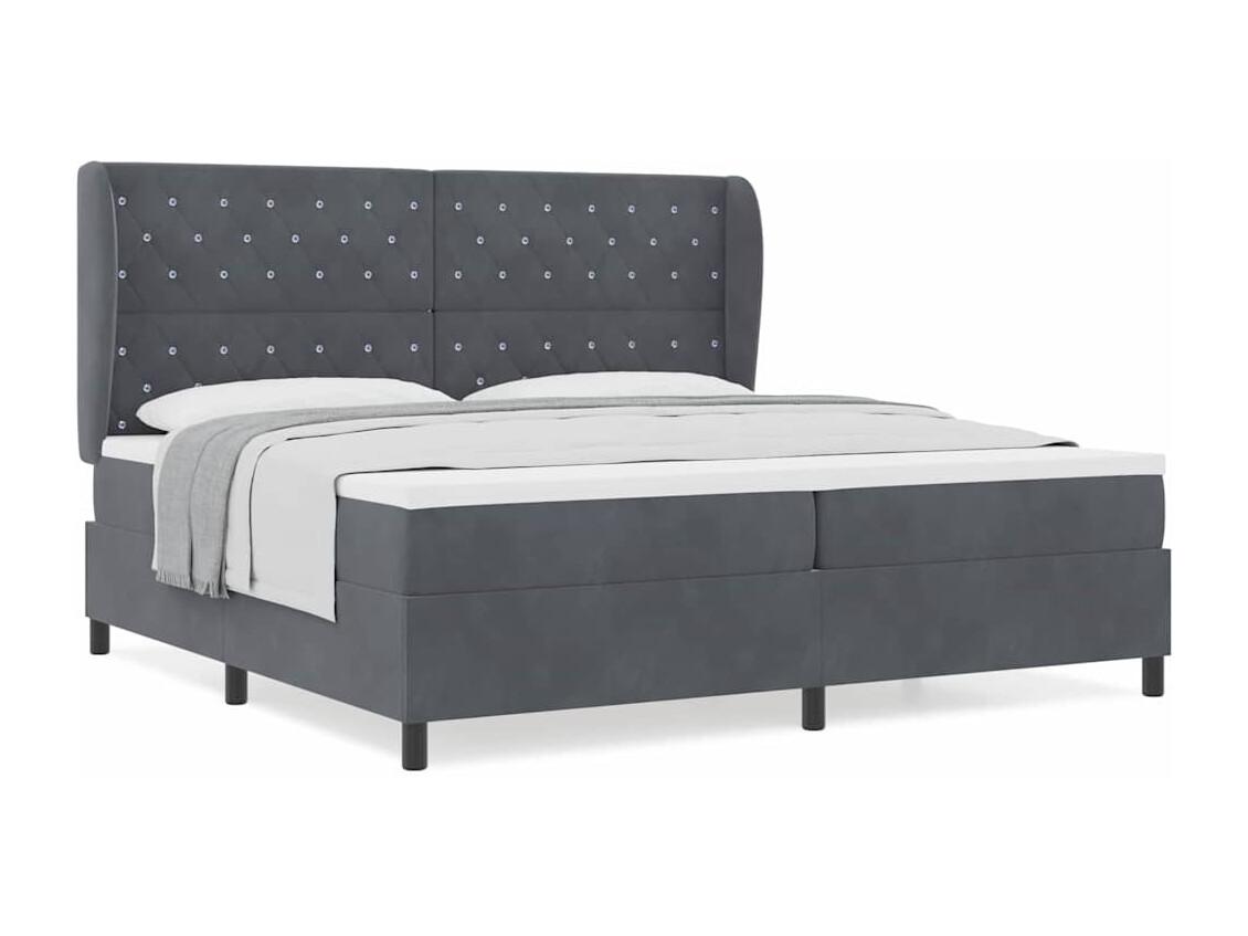 Cadre de lit avec matelas Gris foncé 200 x 200 cm Velours