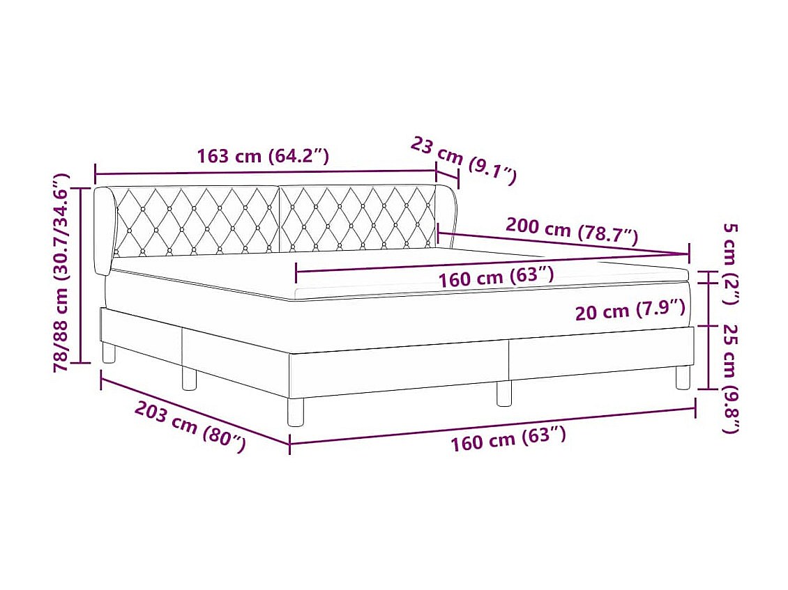 Cadre de lit avec matelas Bleu foncé 160 x 200 cm Velours