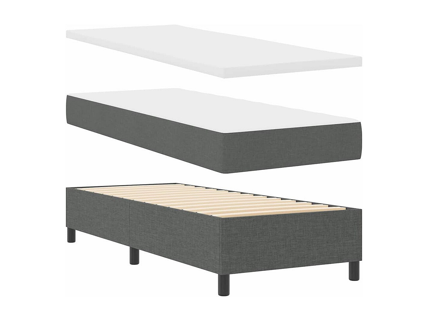 Cadre de lit avec matelas Gris foncé 90 x 190 cm tissu