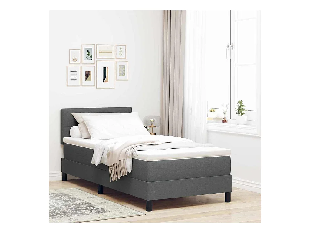 Cadre de lit avec matelas Gris foncé 90 x 200 cm tissu