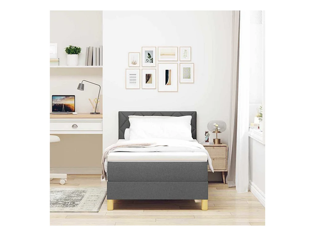 Cadre de lit avec matelas Gris foncé 90 x 200 cm tissu