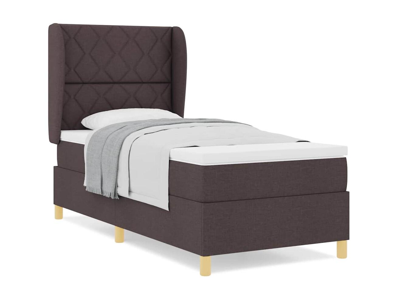 Cadre de lit avec matelas Marron foncé 90 x 200 cm tissu