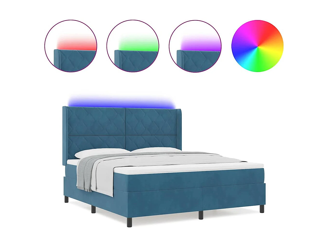 Cadre de lit avec Matelas LED Bleu 180 x 200 cm Velours