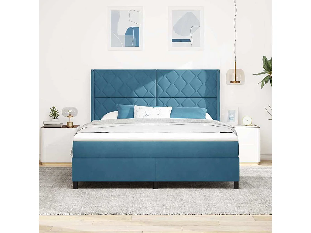 Sommier à lattes de lit et matelas bleu 180x200 cm velours
