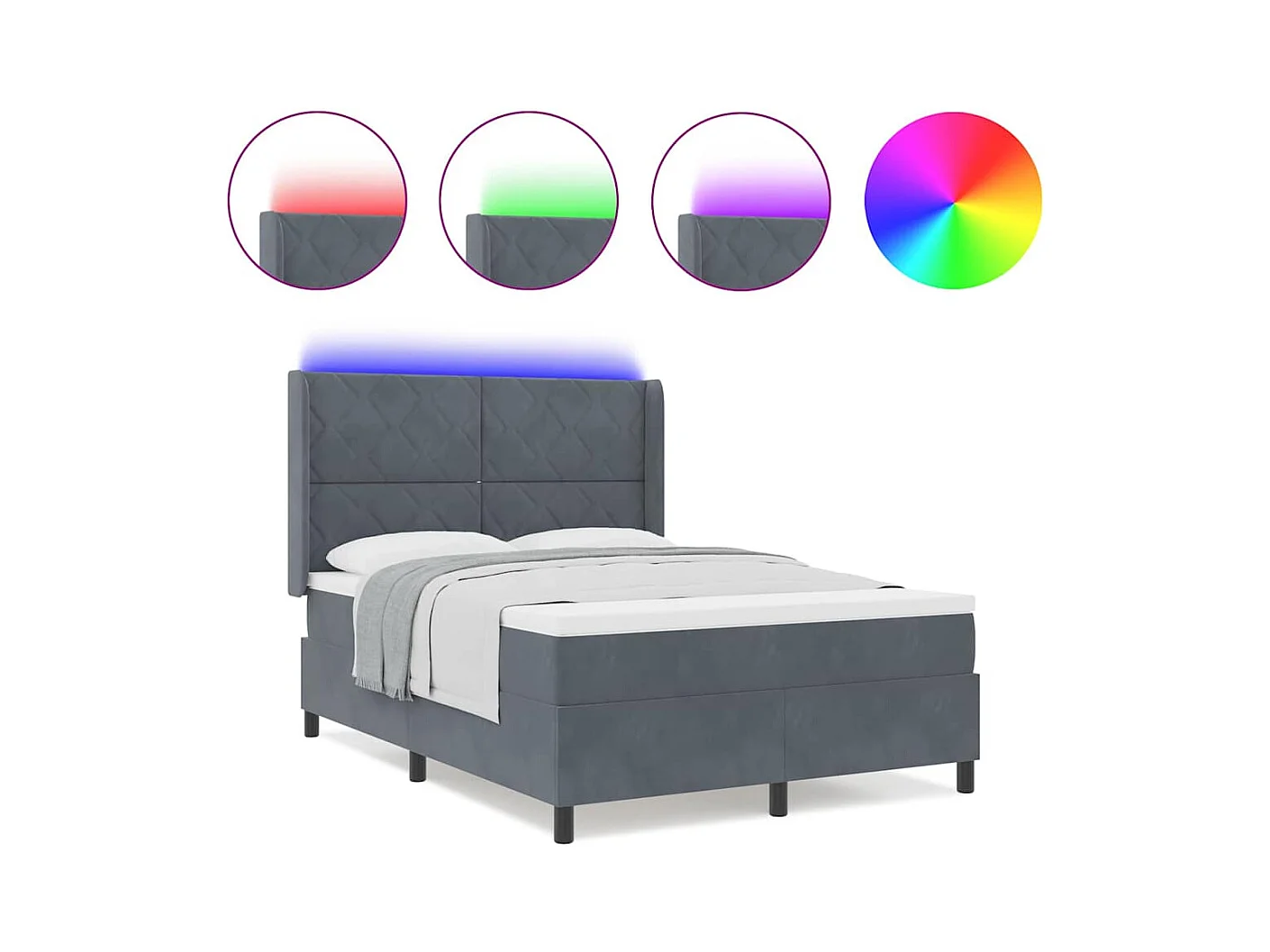 Cadre de lit avec Matelas LED Gris foncé 140 x 200 cm Velours