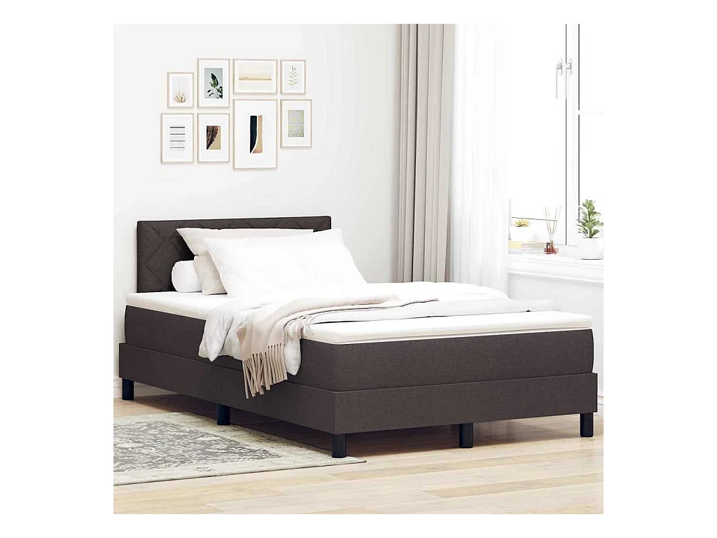 Cadre de lit avec matelas Marron foncé 120 x 190 cm tissu